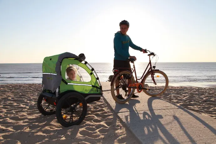 Emmenez toute la famille en balade ! Nos remorques vélo sécurisées permettent de transporter vos enfants ou vos affaires en toute tranquillité. Equipées de harnais de sécurité, protection météo et système d'attache universel. Parfaites pour les sorties familiales et les escapades avec bagages.
